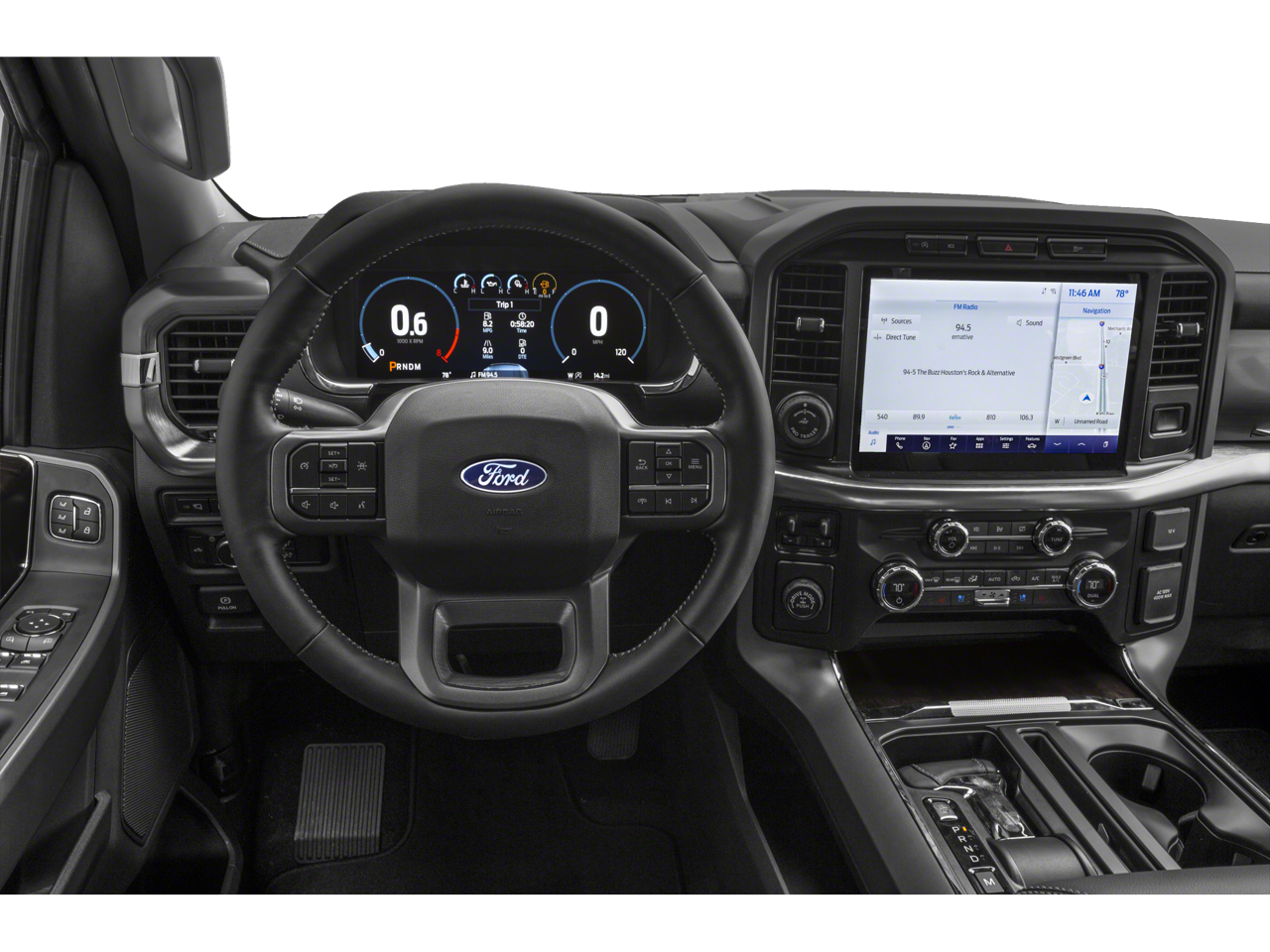 • SYNC 4 w/Enhanced Voice Recognition -inc: 12" LCD capacitive touchscreen w/swipe capability, information on demand panel, wireless phone connection, cloud connected, AppLink w/App catalog, 911 Assist, Apple CarPlay and Android Auto compatibility, digital owners manual, conversational voice command recognition and connected navigation, Note: Navigation services require SYNC®4 and FordPass Connect (optional on select vehicles), complimentary connect service and the FordPass app (see FordPass Terms for details), Customer receives a complimentary 90-day trial of navigation services when an eligible vehicle is added to a member's FordPass account, Trial period begins on the new vehicle warranty start date, At the end of the complimentary period, navigation service will terminate, Connected service and features depend on compatible AT&T network availability, Evolving technology/cellular networks/vehicle capability may limit functionality and prevent operation of connected features, FordPass App, compatible w/select smartphone platforms, is available via a download, Message and data rates may apply